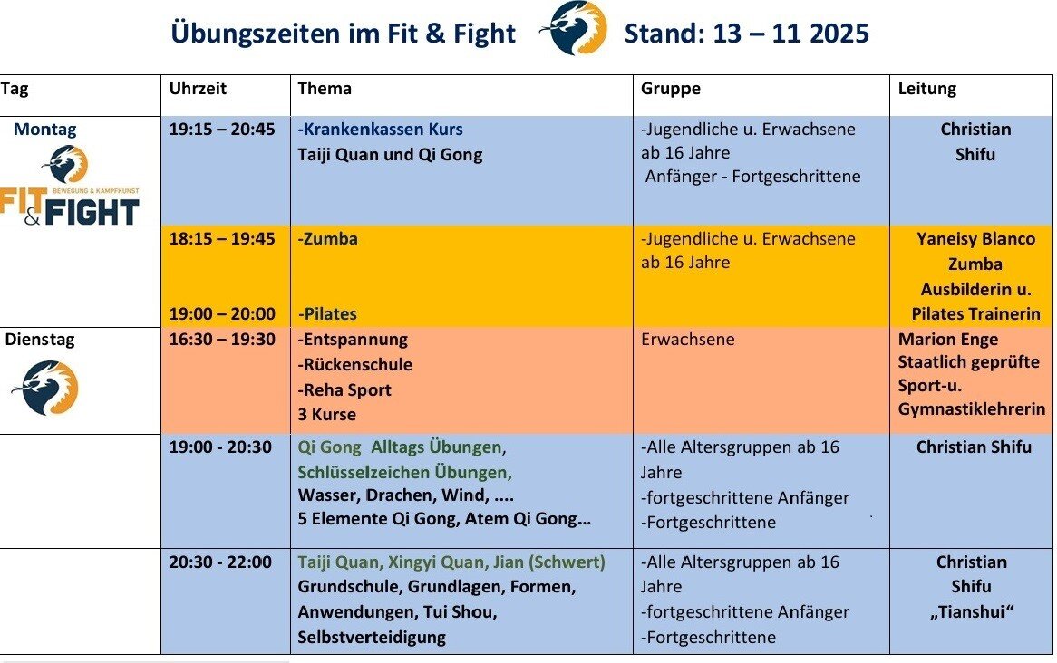 Hier Eure Übungszeiten des Fit & Fight Rheine