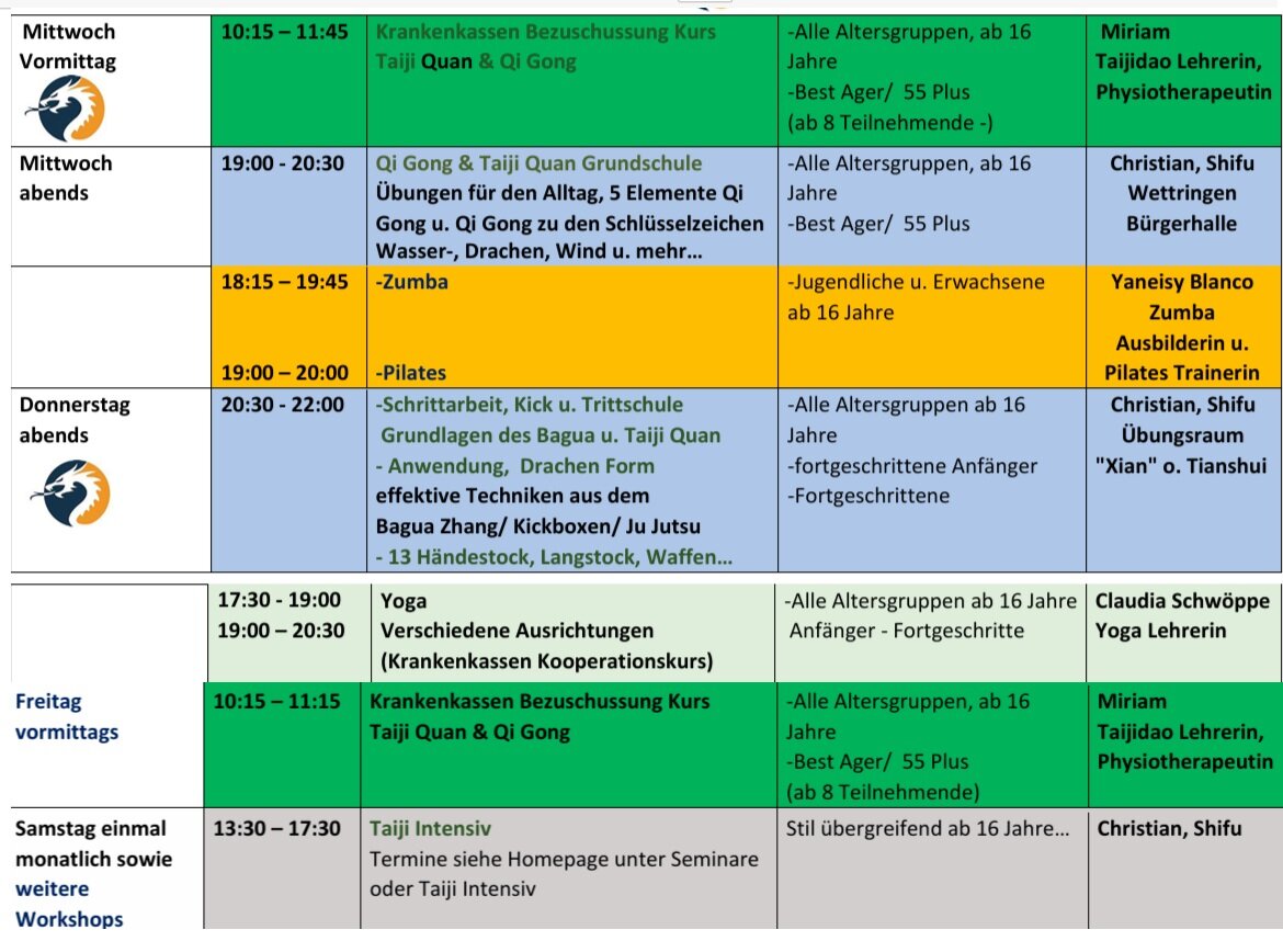 Außer mittwochs Vormittag KV- Kurs Qi Gong in Rheine und Abend KV- Kurs Wettringen.